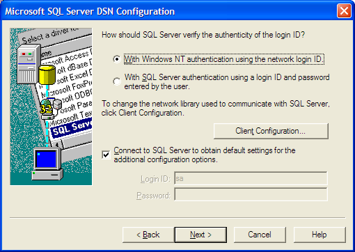 to the following: "CONNECT failed" error when running under ODBC or SQL Server with NT Authentication selected